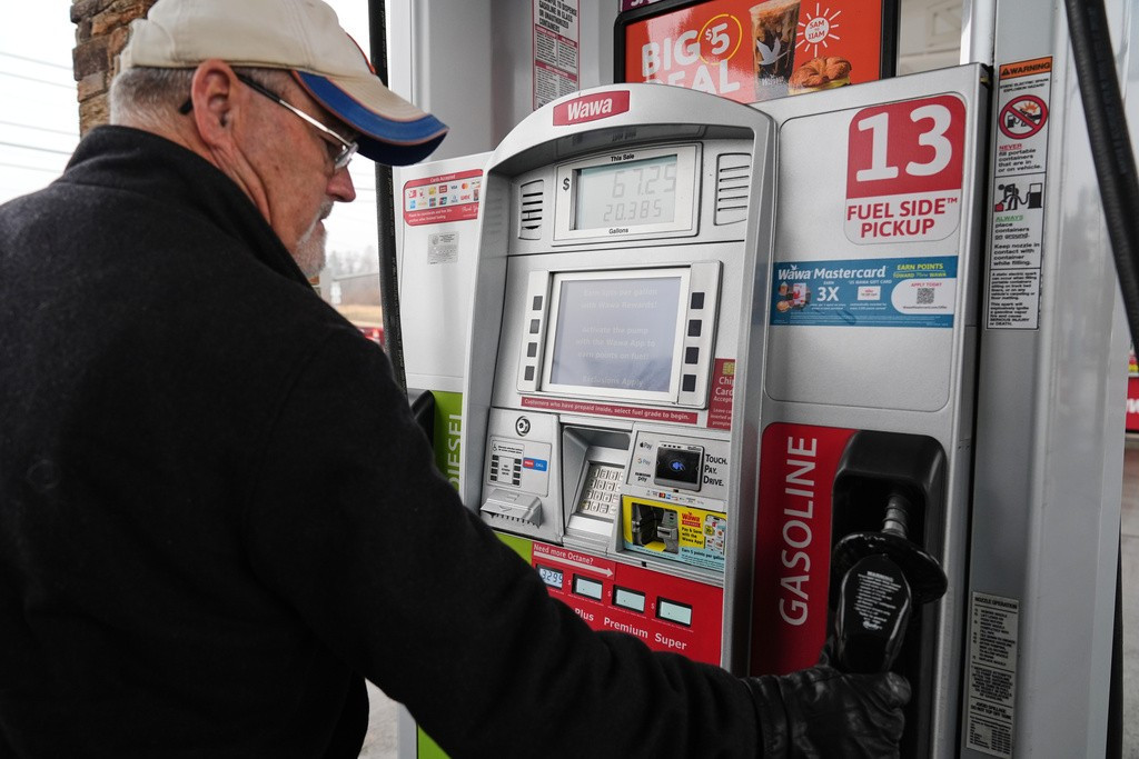 Một người đàn ông mua nhiên liệu tại cây xăng ở Baltimore ngày 4/3. (Ảnh: AP)