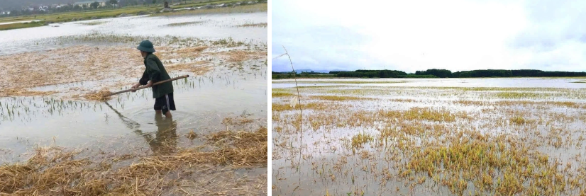 Mưa lớn kéo dài khiến nhiều khu vực trên địa bàn Hà Tĩnh bị ngập sâu, giao thông chia cắt. Nước lũ đổ về đột ngột trong đêm khiến hàng trăm hộ dân ở huyện Cẩm Xuyên không kịp trở tay. Hàng nghìn tấn lúa của nông dân vừa thu hoạch về chưa kịp kê gác đã bị nước cuốn trôi, nhấn chìm.