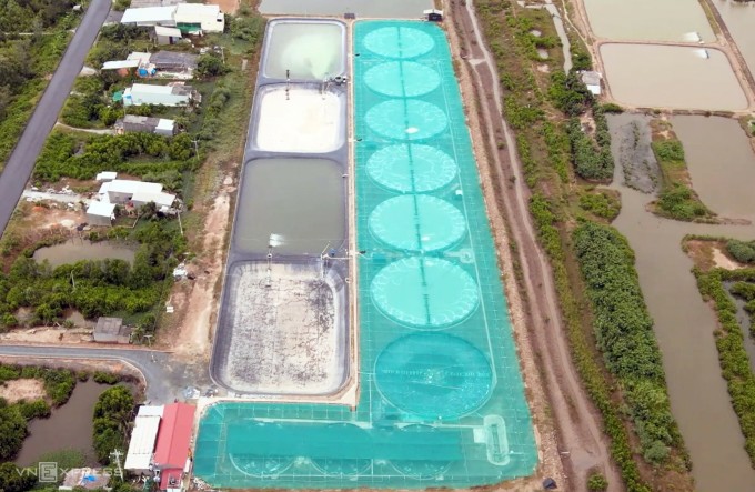 Một khu nuôi tôm công nghệ cao trong hồ nổi của ông Long Văn Nghĩa. Ảnh: Chúc Ly