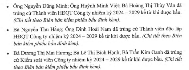 Cũng tại đại hội lần này, cổ đông OCH sẽ tiến hành bầu mới nhân sự Hội đồng quản trị và Ban kiểm soát nhiệm kỳ 2024 - 2029.
