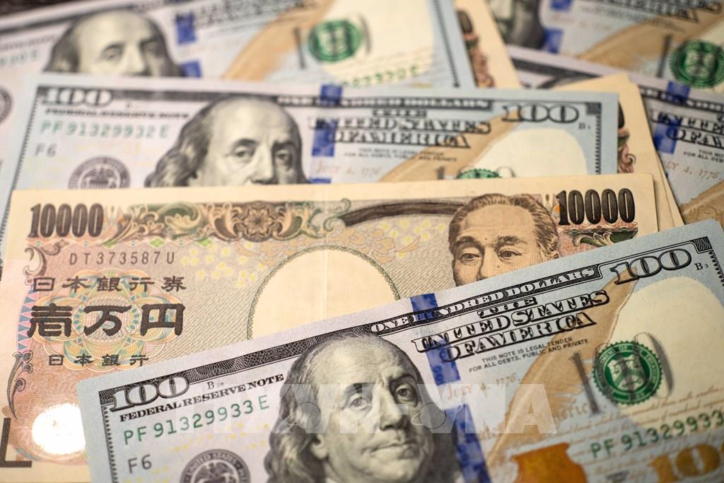Đồng tiền 10.000 yen của Nhật Bản và đồng 100 USD của Mỹ. Ảnh: THX/TTXVN