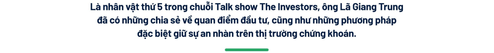 Ông Lã Giang Trung: Tựu chung lại, tôi nghĩ việc quản trị rủi ro để không mất tiền là điều quan trọng nhất. “Thị trường chúng khoán là nơi kiếm tiền thì lâu, mất tiền thì nhanh” là câu nói tôi rất tâm đắc. Nếu hiểu được điều này, tôi tin nhà đầu tư sẽ có được thành công lâu dài trên thị trường.