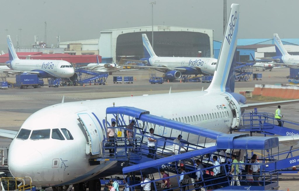 Máy bay của hãng hàng không IndiGo tại sân bay quốc tế Indira Gandhi ở New Delhi, Ấn Độ. Ảnh: AFP/TTXVN