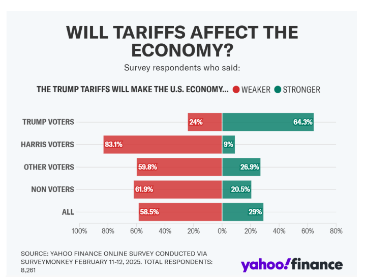 Phần lớn cử tri Mỹ đều cho rằng thuế quan sẽ có tác động tới kinh tế Mỹ. Đồ họa của Yahoo Finance