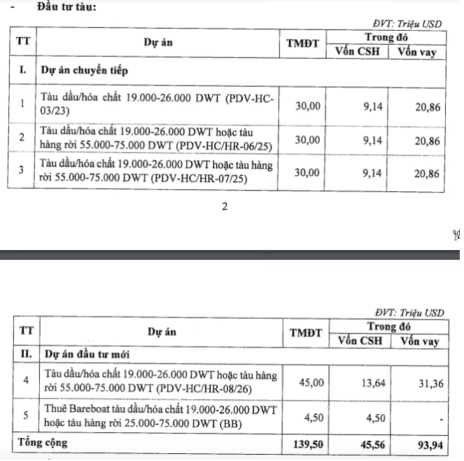 Tổng ngân sách cho hoạt động đầu tư tàu mới dự kiến ở mức 135 tỷ đồng, được tài trợ 30% bởi vốn chủ sở hữu và phần còn lại là vốn vay.