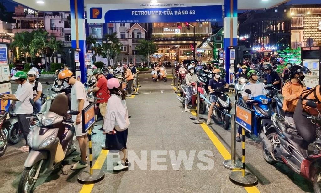 Khách hàng đến đổ xăng dầu tại cửa hàng xăng dầu Petrolimex số 53 tại Thành phố Hồ Chí Minh. Ảnh: Bnews phát