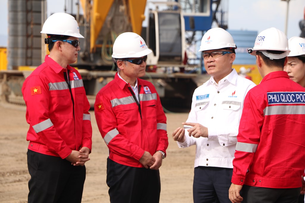 Tổng giám đốc Petrovietnam Lê Ngọc Sơn kiểm tra thực địa công trường triển khai các phần việc liên quan của Dự án Phát triển Mỏ khí Lô B. Ảnh: Anh Nguyễn/BNEWS/TTXVN