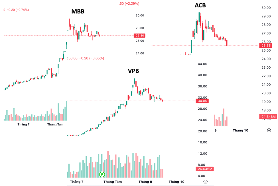 Ngân hàng – từng là “đầu tàu” – nay liên tục tạo đáy thấp dần, báo hiệu sức mạnh không còn.