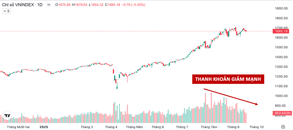Dòng tiền giao dịch đã rơi từ mức 60–80 nghìn tỷ xuống chỉ còn khoảng 30 nghìn tỷ, phản ánh sự thận trọng của nhà đầu tư.