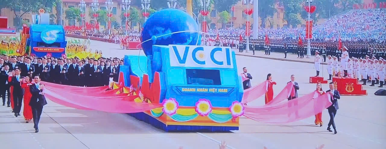 Khối Doanh nhân Việt Nam tiến bước trên Quảng trường Ba Đình trong buổi lễ Kỷ niệm trọng thể 80 năm Quốc khánh nước Cộng hòa XHCN Việt Nam