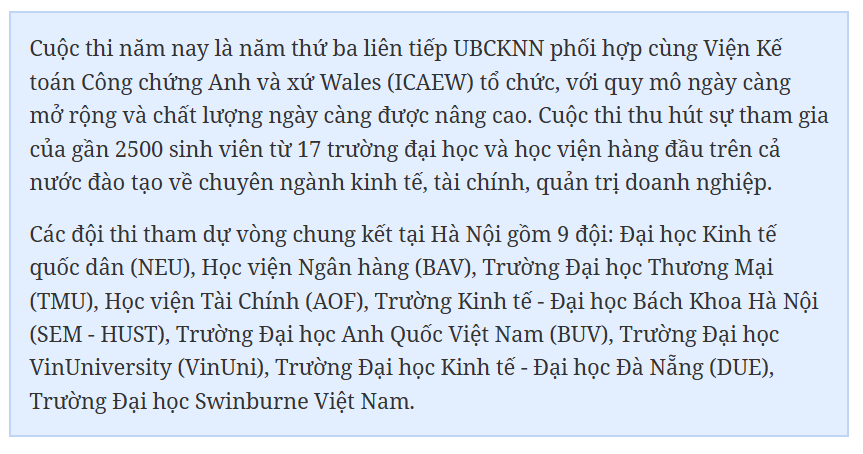 Ủy ban Chứng khoán Nhà nước (UBCKNN) vừa phối hợp cùng Viện Kế toán Công chứng Anh và xứ Wales (ICAEW) tổ chức Vòng Chung kết cuộc thi “Quản trị công ty hướng tới phát triển bền vững – Vietnam ESG Challenge 2025”. Cuộc thi nhằm truyền cảm hứng về tư duy phát triển bền vững, quản trị hiện đại và trách nhiệm xã hội cho thế hệ sinh viên Việt Nam.