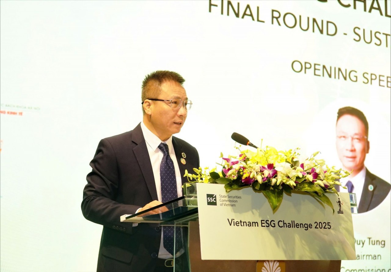 Phát biểu khai mạc cuộc thi "Quản trị công ty hướng tới phát triển bền vững – Vietnam ESG Challenge 2025", Phó Chủ tịch UBCKNN Hà Duy Tùng cho biết trong bối cảnh kinh tế toàn cầu đang chuyển dịch mạnh mẽ, đổi mới sáng tạo theo hướng chuyển đổi số và phát triển bền vững, yêu cầu về quản trị công ty tốt, minh bạch gắn với yếu tố môi trường – xã hội – quản trị (ESG) đã trở thành tiêu chuẩn toàn cầu. Nhằm thực hiện Chiến lược phát triển thị trường chứng khoán đến năm 2030, UBCKNN xác định phát triển bền vững và quản trị công ty hiệu quả là hai trụ cột then chốt để nâng cao chất lượng doanh nghiệp niêm yết, củng cố niềm tin của nhà đầu tư và tạo nền tảng cho tăng trưởng dài hạn.