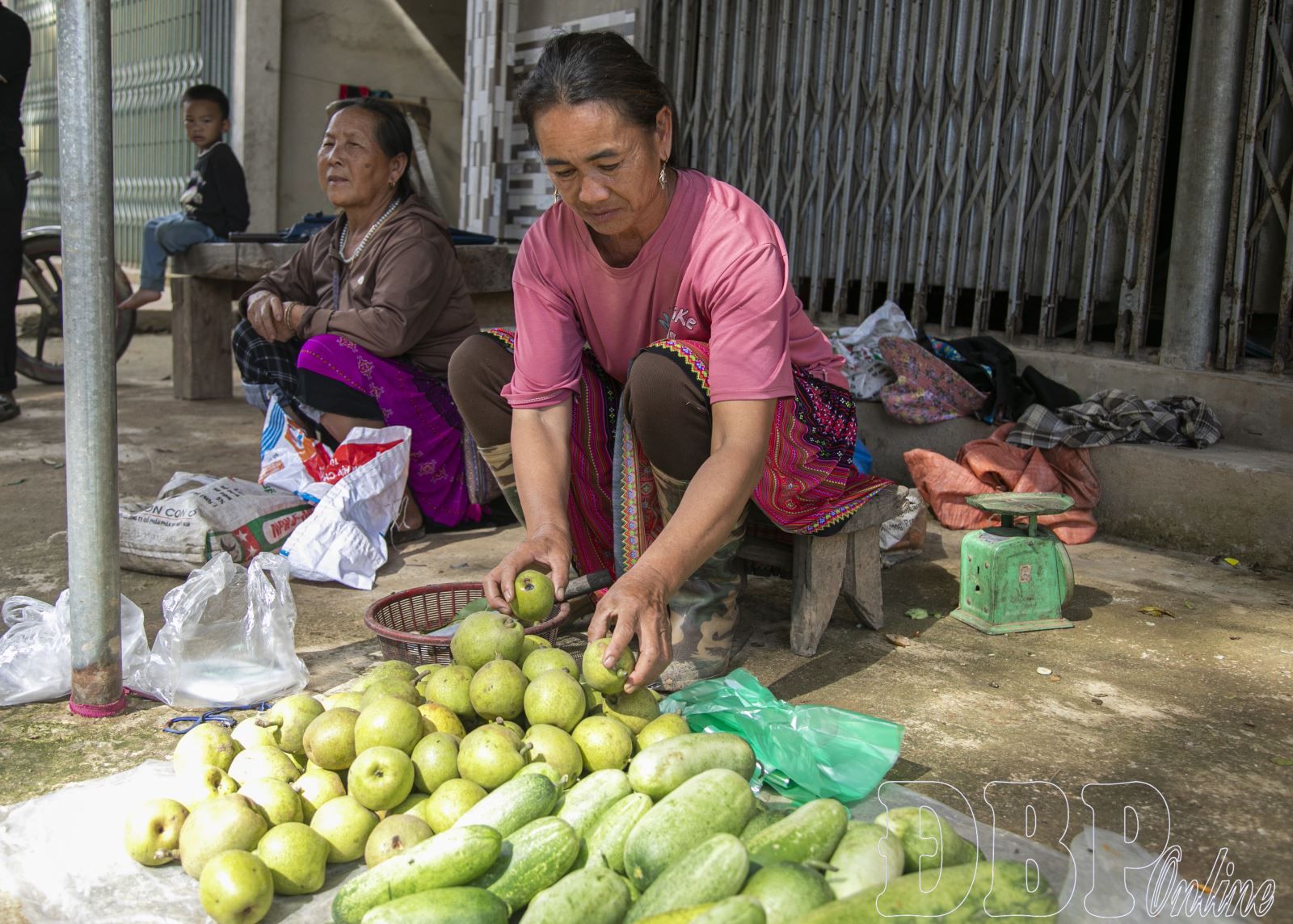 Các loại hoa quả được người dân Pu Nhi bày bán tại nhà.