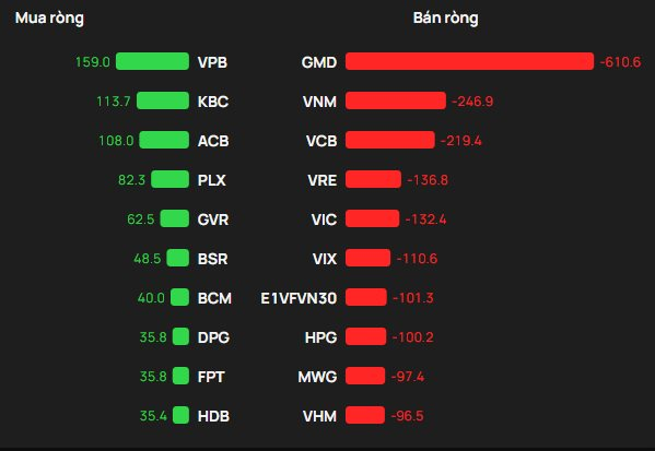 Tại chiều mua, cổ phiếu VPB được khối ngoại mua mạnh nhất trên HOSE với giá trị hơn 159 tỷ đồng. Theo sau, KBC là mã tiếp theo được gom mạnh 114 tỷ đồng. Ngoài ra, ACB và PLX cũng được mua lần lượt 108 và 82 tỷ đồng.