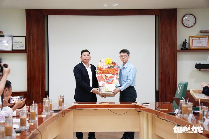 Phó chủ tịch hội đồng quản trị, Phó tổng giám đốc Công ty cổ phần Thanh Bình Phú Mỹ Nguyễn Nhật Quang đại diện doanh nghiệp nhận quà chúc Tết của UBND TP.HCM