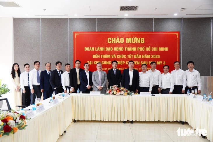 Sáng 2-3, Phó chủ tịch UBND TP.HCM Hoàng Nguyên Dinh dẫn đầu đoàn công tác đến thăm, chúc Tết Công ty cổ phần China Steel & Nippon Steel Việt Nam tại Khu công nghiệp Mỹ Xuân A2 (phường Phú Mỹ, TP.HCM).