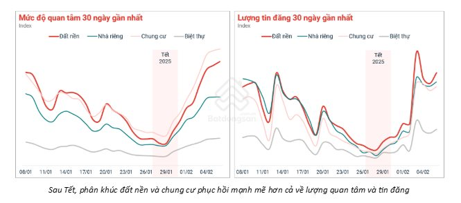 Báo cáo mới đây nhất của Batdongsan.com.vn đánh giá, mặc dù thị trường bất động sản sau Tết đang chuyển biến tích cực khi lượng tìm kiếm bất động sản, lượng tin đăng bán, cho thuê đều tăng và giá đã chững lại, nhưng để thanh khoản tốt hơn, vẫn cần nhiều cú hích.