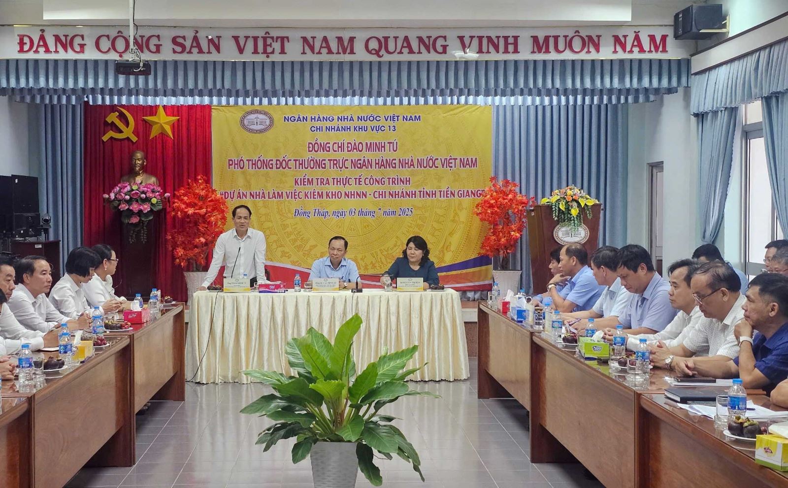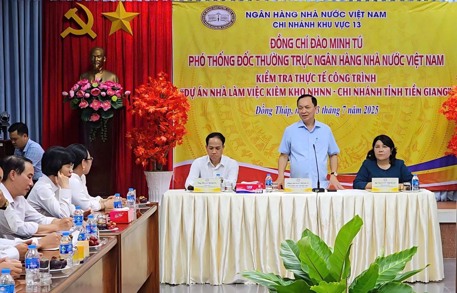 Kết luận buổi làm việc, Phó Thống đốc Thường trực Đào Minh Tú biểu dương kết quả đạt được và yêu cầu NHNN chi nhánh Khu vực 13 tiếp tục triển khai nghiêm túc các nhiệm vụ trọng tâm: hoàn thiện công trình xây dựng đúng quy định; đẩy mạnh công tác thanh tra, giám sát, đảm bảo an toàn kho quỹ; phối hợp chặt chẽ với chính quyền địa phương; chỉ đạo các tổ chức tín dụng trong khu vực thực hiện hiệu quả các giải pháp điều hành chính sách tiền tệ, tín dụng, ngoại hối theo chỉ đạo của Chính phủ và Thống đốc Ngân hàng Nhà nước.