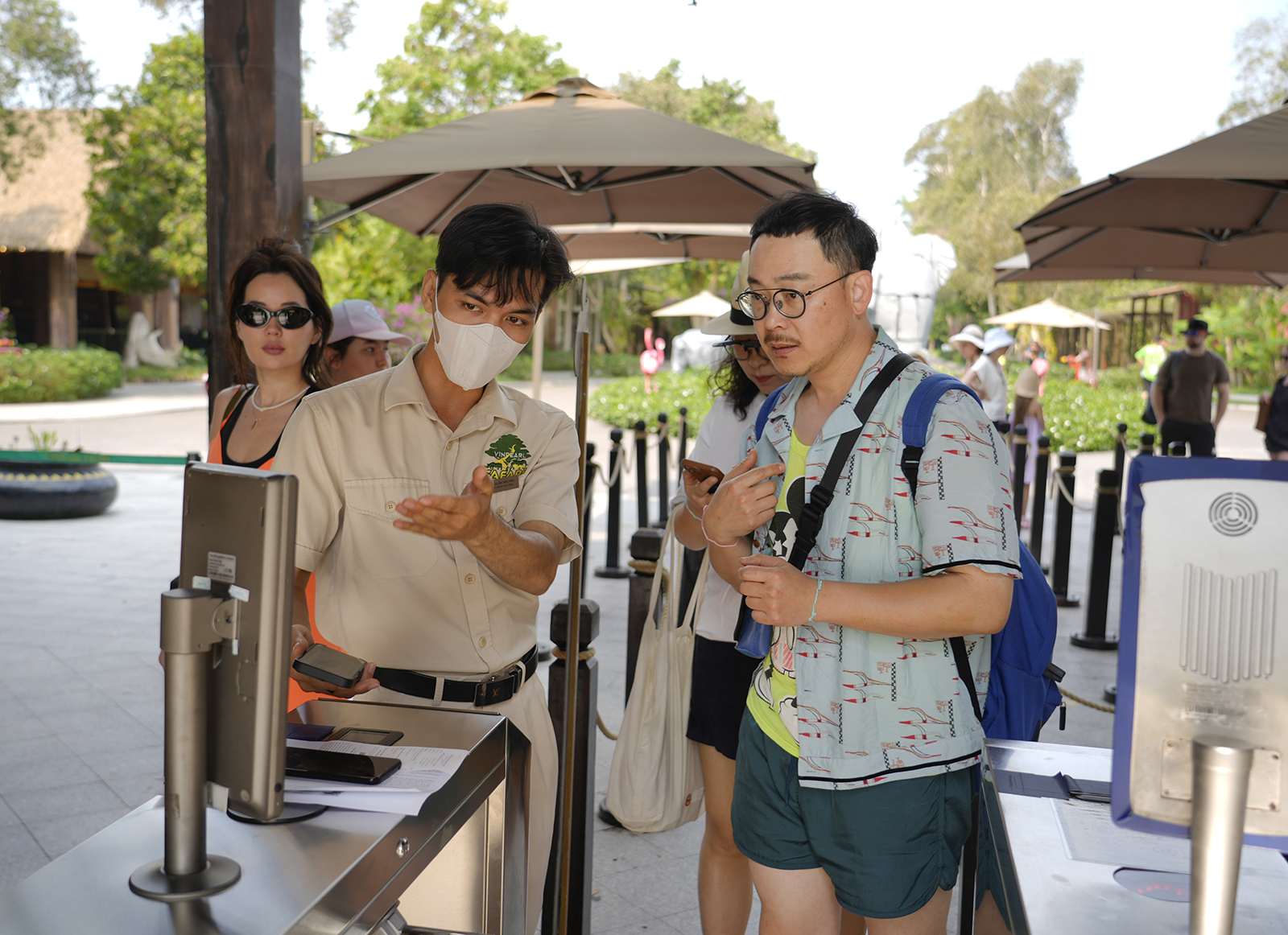 Nhân viên Vinpearl Safari Phú Quốc kiểm soát vé ra vào tại điểm tham quan.