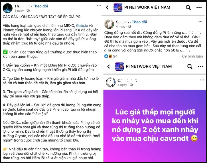 “Nếu OKX nắm giữ phần lớn thanh khoản của Pi, họ sẽ có quyền kiểm soát giá và thao túng thị trường theo hướng có lợi cho mình. Đây là chiến thuật thường thấy trong thị trường tiền ảo, nhà đầu tư cần tỉnh táo, không bán tháo hay mua vào trong hoảng loạn và theo dõi chặt chẽ xu hướng giá”, tài khoản này viết.