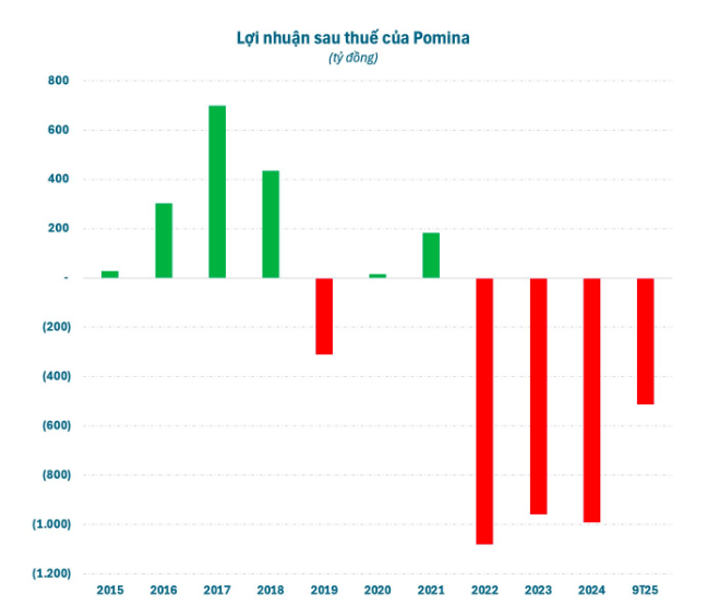 Về tình hình kinh doanh, trong 3 năm gần nhất 2022-24, Pomina đều lỗ trên dưới nghìn tỷ đồng mỗi năm. Trong 9 tháng đầu năm 2025, doanh nghiệp này tiếp tục lỗ hơn 500 tỷ đồng, đẩy lỗ luỹ kế lên hơn 3.000 tỷ đồng. Kết quả này chính thức đẩy Pomina vào tình trạng âm vốn chủ sở hữu.