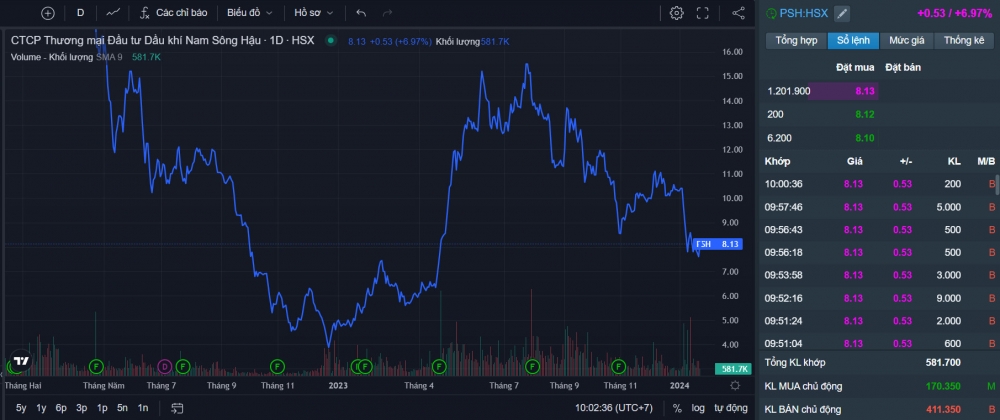 Thông tin có phần khá bất ngờ trên đã ngay lập tức tác động mạnh vào cổ phiếu của doanh nghiệp trên sàn chứng khoán. Cụ thể, sau 3 phiên giảm liên tiếp và rơi xuống mức thấp nhất trong vòng 9 tháng, cổ phiếu PSH của doanh nghiệp đã bất ngờ quay đầu tăng kịch trần ngay từ đầu phiên 23/1. Thời điểm 10h sáng cùng ngày, cổ phiếu PSH này thậm chí còn "trắng bên bán" với dư mua hơn 1,2 triệu đơn vị.