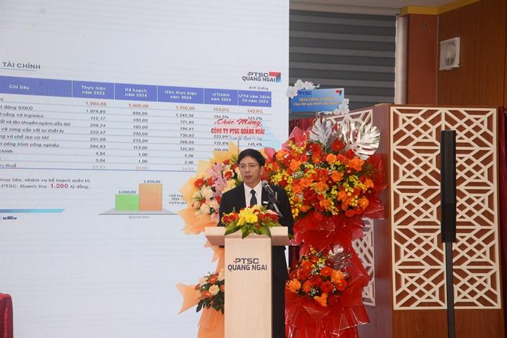 Theo đó, năm 2024 là một năm có nhiều biến động nhưng với sự chỉ đạo quyết liệt của Lãnh đạo Công ty cùng với sự đoàn kết, quyết tâm, nỗ lực không ngừng nghỉ của tập thể Người lao động đồng thời phát huy tối đa sự chỉ đạo, hỗ trợ của TCT, PTSC Quảng Ngãi đã hoàn thành xuất sắc các mục tiêu năm 2024. Một số kết quả nổi bật trong năm 2024 như sau: Về an toàn đạt 4,23 triệu giờ an toàn; tổng doanh thu đạt 1.550 tỷ đồng, vượt 55% so với kế hoạch được giao; lợi nhuận trước thuế vượt so với kế hoạch được giao; thu nhập bình quân đầu người vượt so với kế hoạch đề ra.