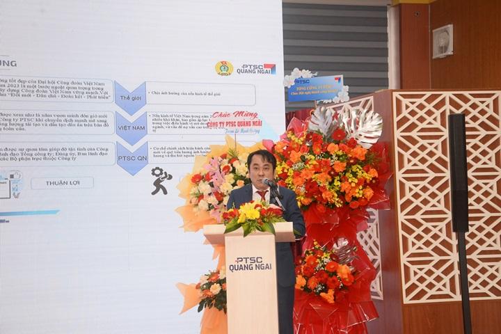 Đến tham dự Hội nghị, về phía Tổng công ty (TCT) có ông Phan Thanh Tùng – Bí thư Đảng ủy, Chủ tịch HĐQT TCT; ông Phạm Văn Hùng – Phó Tổng Giám đốc, Phó Chủ tịch Công đoàn TCT, Bí thư Đảng ủy, Chủ tịch HĐQT PTSC Quảng Ngãi cùng đại diện các Ban chức năng, Văn phòng Đảng – Đoàn thể và đại diện các Đơn vị thành viên trực thuộc TCT. Về phía PTSC Quảng Ngãi có sự hiện hiện của Ông Lê Hồng Phong – Ủy viên BTV Đảng uỷ, Thành viên HĐQT, Giám đốc Công ty cùng các đồng chí trong Ban chấp hành Đảng bộ Công ty; Ban Giám đốc, Lãnh đạo các đoàn thể chính trị xã hội, Lãnh đạo các Bộ phận trực thuộc Công ty và 151 đại biểu đã có nhiều thành tích xuất sắc trong các phong trào thi đua, đại diện cho hơn 750 Người lao động đang làm việc tại PTSC Quảng Ngãi cũng về tham dự đông đủ.