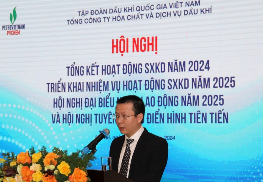 Phát biểu chỉ đạo tại Hội nghị, ông Bùi Minh Tiến - Uỷ viên Ban thường vụ Đảng uỷ, Thành viên HĐTV Tập đoàn ghi nhận những nỗ lực ổn định hoạt động sản xuất kinh doanh của PVChem trong năm 2024, sự thẳng thắn nhìn nhận những vấn đề còn tồn tại, khó khăn trong hoạt động quản trị, sản xuất kinh doanh của Tổng công ty. Thay mặt lãnh đạo Tập đoàn, ông Bùi Minh Tiến thông báo đến toàn thể CBCNV của PVChem các thành tựu trong sản xuất kinh doanh của toàn Tập đoàn trong năm 2024 – một dấu mốc đặc biệt của Tập đoàn khi đạt doanh thu trên 1 triệu tỷ VNĐ trong bối cảnh giá dầu giảm so với năm 2023 và những kế hoạch, phương hướng, nhiệm vụ và Chiến lược của Tập đoàn trong thời gian tới.