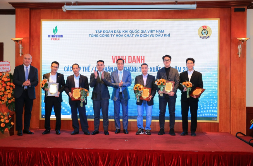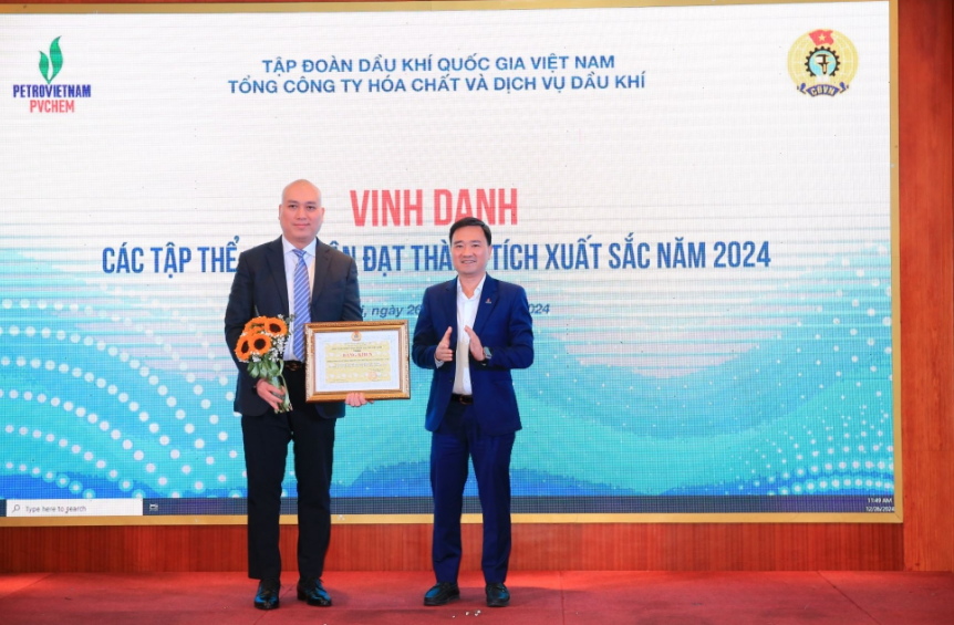Tại Hội nghị, ông Bùi Minh Tiến - Uỷ viên Ban thường vụ Đảng uỷ, Thành viên HĐTV Tập đoàn đã trao giấy khen của Tổng giám đốc Tập đoàn cho các tập thể có thành tích xuất sắc trong hoạt động sản xuất kinh doanh năm 2023; PVChem cũng trao bằng khen cho các lao động tiêu biểu trong năm 2024; Công đoàn Dầu khí Việt Nam trao bằng khen cho Công đoàn cơ sở PVChem đã có thành tích xuất sắc trong hoạt động công đoàn năm 2024.