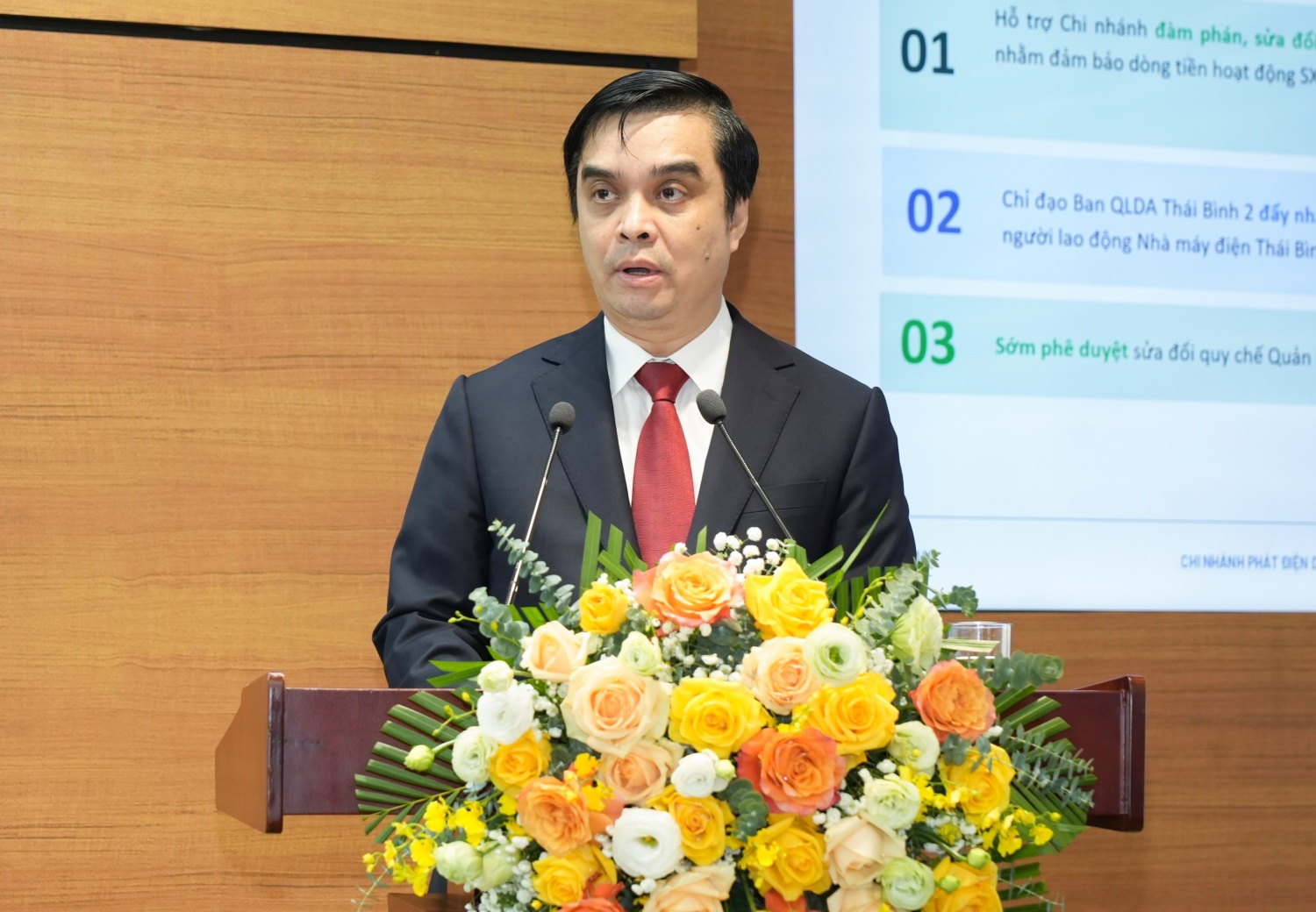 Đồng chí Nguyễn Huy Vượng, Phó Bí thư Đảng ủy, Phó Giám đốc, Chủ tịch Công đoàn PVPGB trình bày báo cáo tổng kết công tác Đảng năm 2025.
