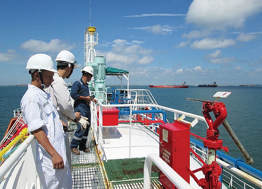 Người lao động PVTrans làm việc trên tàu chở dầu