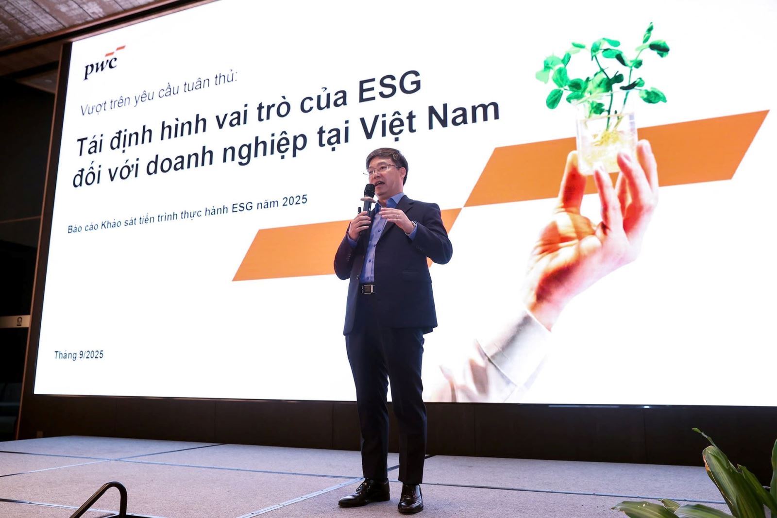 Ông Nguyễn Hoàng Nam, Phó tổng giám đốc, Lãnh đạo Dịch vụ ESG PwC Việt Nam trình bày báo cáo