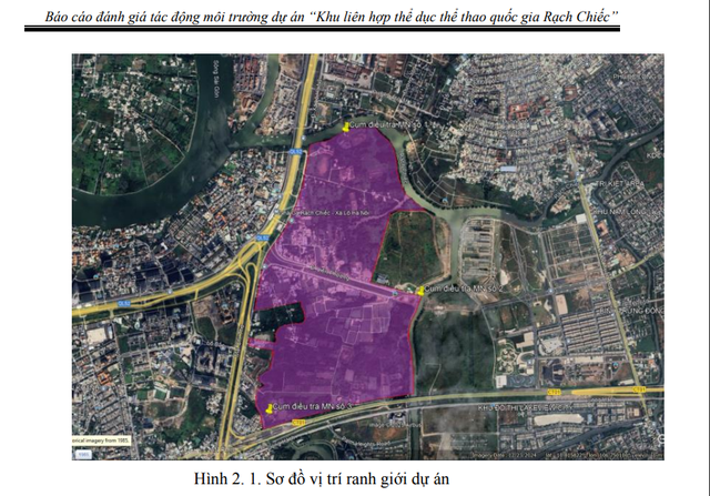 Theo báo cáo đánh giá tác động môi trường đang được lấy ý kiến, Khu liên hợp Thể dục Thể thao Quốc gia Rạch Chiếc có diện tích hơn 186 ha, nằm tại phường Bình Trưng (TP.HCM).