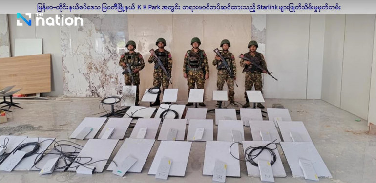 Quân đội Myanmar kiểm tra và tháo dỡ 30 thiết bị internet vệ tinh Starlink trái phép trên mái nhà tại KK Park. Ảnh: The Nation
