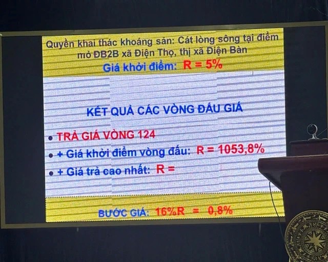 Sau 20 giờ trải qua 200 vòng đấu, Công ty Cổ phần MT Quảng Đà là đơn vị trả mức giá cao nhất với số tiền trúng đấu giá hơn 370 tỉ đồng, tăng hơn 308 lần so với giá khởi điểm (1,2 tỉ đồng).