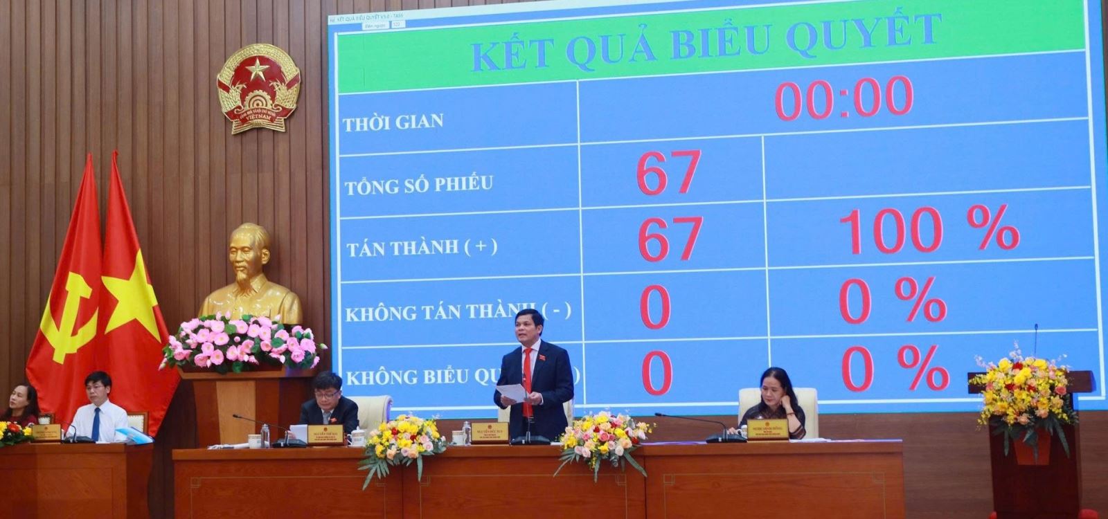 Đại biểu HĐND tỉnh Quảng Ngãi thống nhất thông qua Nghị quyết. Ảnh: Võ Hà.