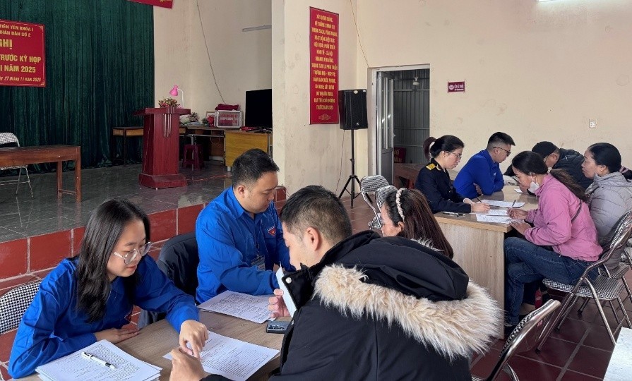 Đoàn viên thanh niên Thuế cơ sở 6 tỉnh Quảng Ninh hướng dẫn, hỗ trợ hộ kinh doanh chuyển đổi mô hình và cài đặt, sử dụng ứng dụng eTax Mobile. Ảnh Thuế tỉnh Quảng Ninh