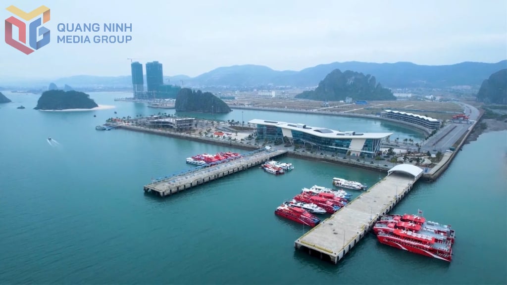 Bến cảng quốc tế Ao Tiên đang là điểm nhấn trong việc phát triển kinh tế biển của đặc khu Vân Đồn. Ảnh QMG