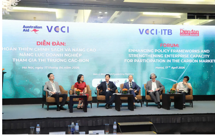 Ngày 17/4, Liên đoàn Thương mại và Công nghiệp Việt Nam (VCCI), với sự hỗ trợ của Bộ Ngoại giao và Thương mại Úc (DFAT) và chương trình Aus4Growth đã tổ chức diễn đàn "Hoàn thiện chính sách và nâng cao năng lực doanh nghiệp tham gia thị trường các-bon".
