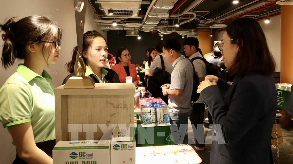 Doanh nghiệp giới thiệu sản phẩm trong sự kiện. Ảnh: Xuân Anh - TTXVN