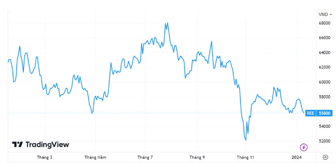 Trên thị trường, cổ phiếu REE giảm giá từ vùng 58.300 đồng/cp về 55.800 đồng/cp trong các phiên giao dịch đầu năm và cao hơn vùng đáy 52.200 đồng/cp đầu tháng 11/2023.