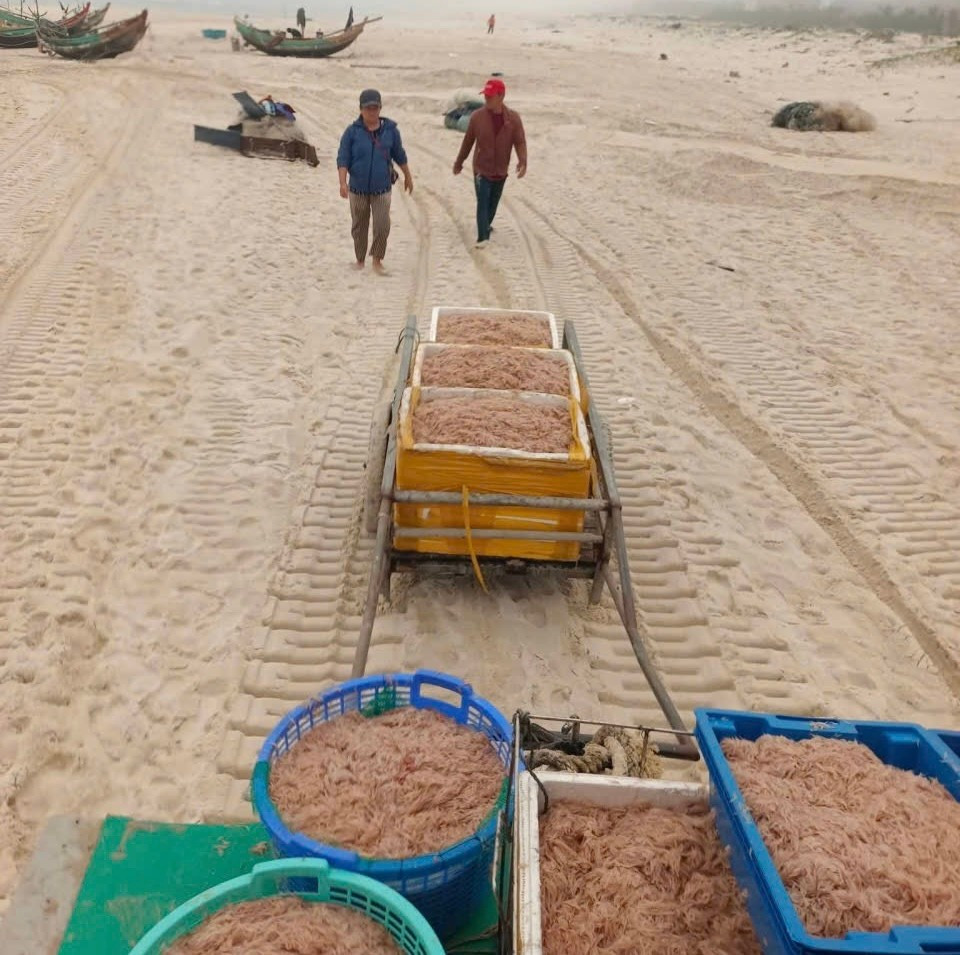 Từ mùng 4 đến mùng 6 Tết, thời tiết thuận lợi, biển êm, nguồn lợi dồi dào, số lượng thuyền ra khơi tăng đáng kể. Ngư dân trúng đậm nhiều loại hải sản có giá trị kinh tế như mực, cá đù, cá trích, cá sòng và đặc biệt là ruốc biển.