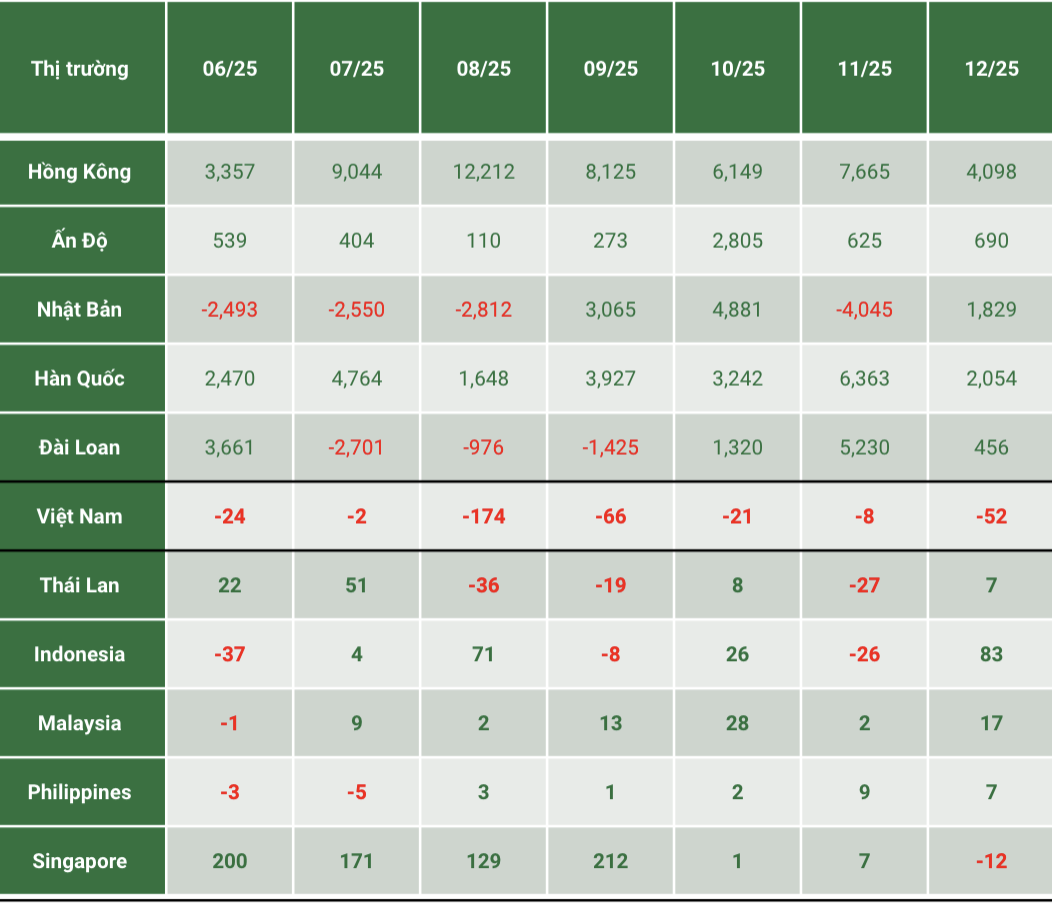 Đối với dòng vốn ETF, Việt Nam vẫn ghi nhận trạng thái rút ròng trong tháng 12 năm ngoái, song bức tranh chung tại châu Á lại khá tích cực.