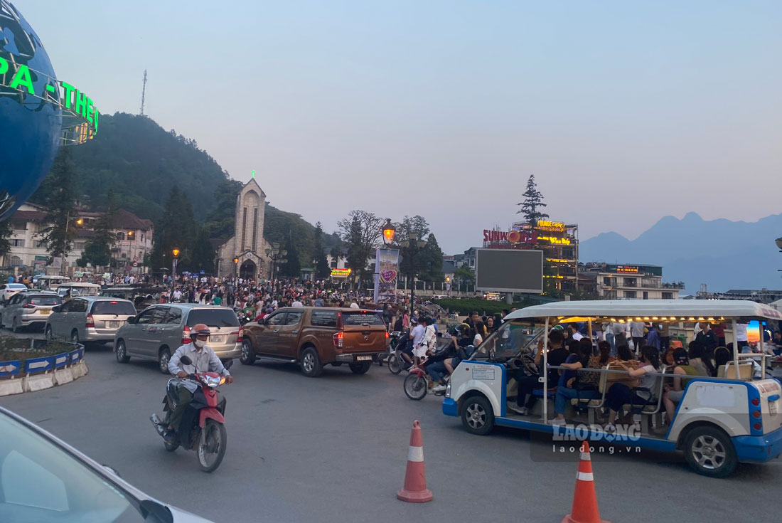 Trung tâm Sa Pa thường xuyên ùn tắc vào dịp cuối tuần và ngày lễ. Ảnh: Bảo Nguyên