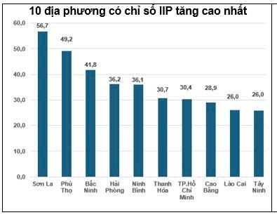 Chỉ số sản xuất công nghiệp tháng 1/2026 so với cùng kỳ năm trước tăng ở cả 34 địa phương. Top 10 địa phương có chỉ số IIP tăng cao nhất hầu hết là các tỉnh phía Bắc, trong đó Sơn La có mức tăng rất cao 56,7%; tiếp đến là Phú Thọ (+49,2%); Bắc Ninh (+41,8%); TP. Hải Phòng (+36,2%);...