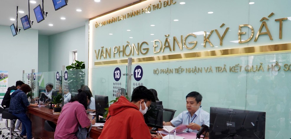Người dân đến làm thủ tục hồ sơ tại Văn phòng đăng ký đất đai TP. Thủ Đức, TP. Hồ Chí Minh. Ảnh: Sơn Nam