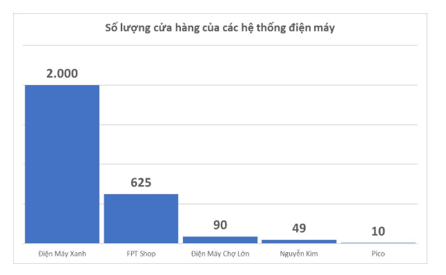 Tính đến cuối năm 2024, chuỗi này chỉ còn duy trì 49 cửa hàng sau khi đóng cửa các điểm bán không hiệu quả. Con số này khá khiêm tốn khi đặt cạnh mạng lưới hơn 2000 của Điện Máy Xanh và 625 cửa hàng FPT Shop.