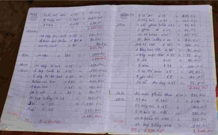 Sổ ghi nợ của chị L., chủ cửa hàng văn phòng phẩm ở Đắk R'lấp.