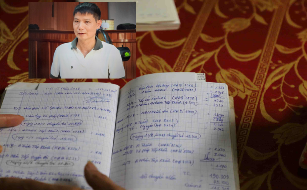 Anh Nguyễn Đăng Toản và cuốn sổ ghi nợ tiền cơm của cán bộ xã, thị trấn.